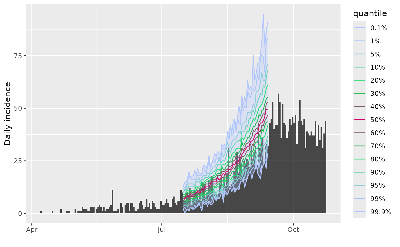 project) shows quantiles of predicted incidence over time. The